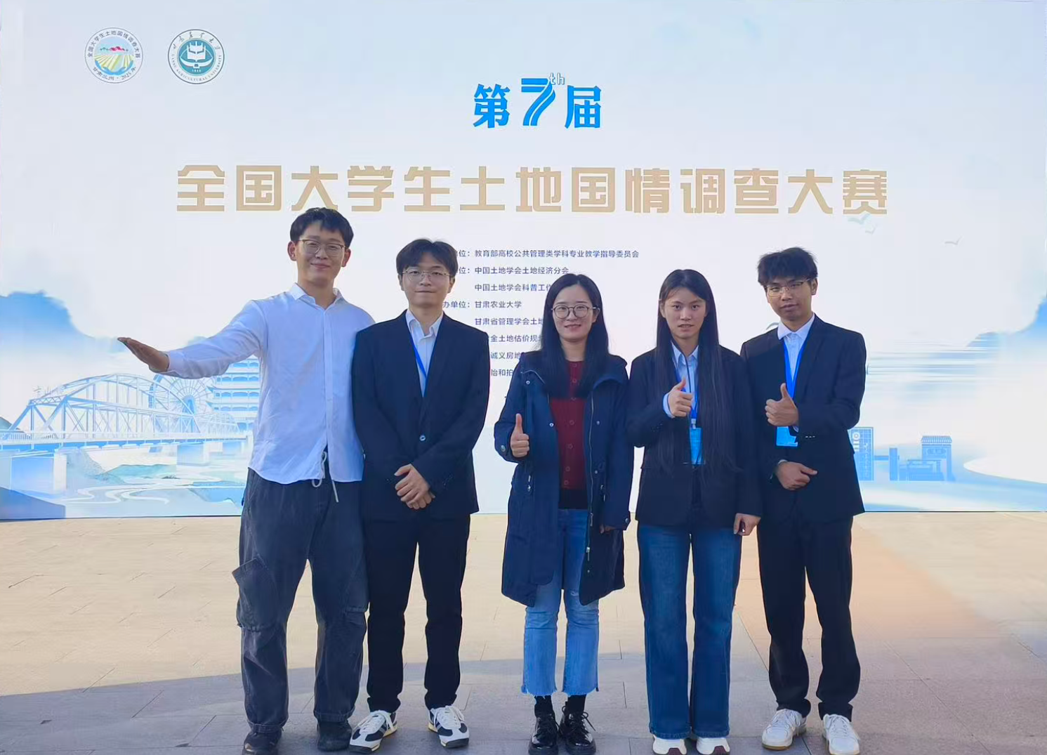10月12日,第七届全国大学生土地国情调查大赛全国总决赛在甘肃农业大学圆满落幕。大赛以“数智赋能国土空间高质量发展”为主题,组委会共收到来自全国87所高校184份参赛作品,经专家评审,共67份作品入围决赛。我院2023级土地资源管理专业本科生组建的两支队伍,凭借其扎实的专业素养和优秀的调查成果顺利晋级决赛,并分别获得一等奖、三等奖。