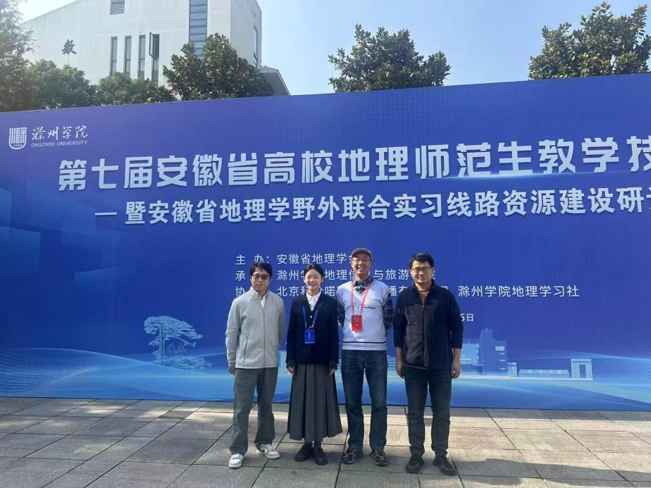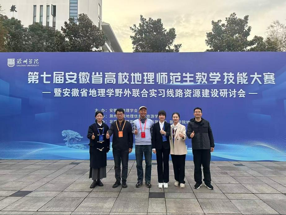 2025年11月14至15日,第七届安徽省高校地理师范生教学技能竞赛在滁州学院举办。本次大赛由安徽省地理学会主办,滁州学院地理信息与旅游学院承办,来自全省7所高校的21名选手参赛。地理与旅游学院2023级地理科学(师范)专业本科生方雪伊、张婧文、唐羽翎代表我校地理组参加比赛,斩获特等奖1项、一等奖2项。