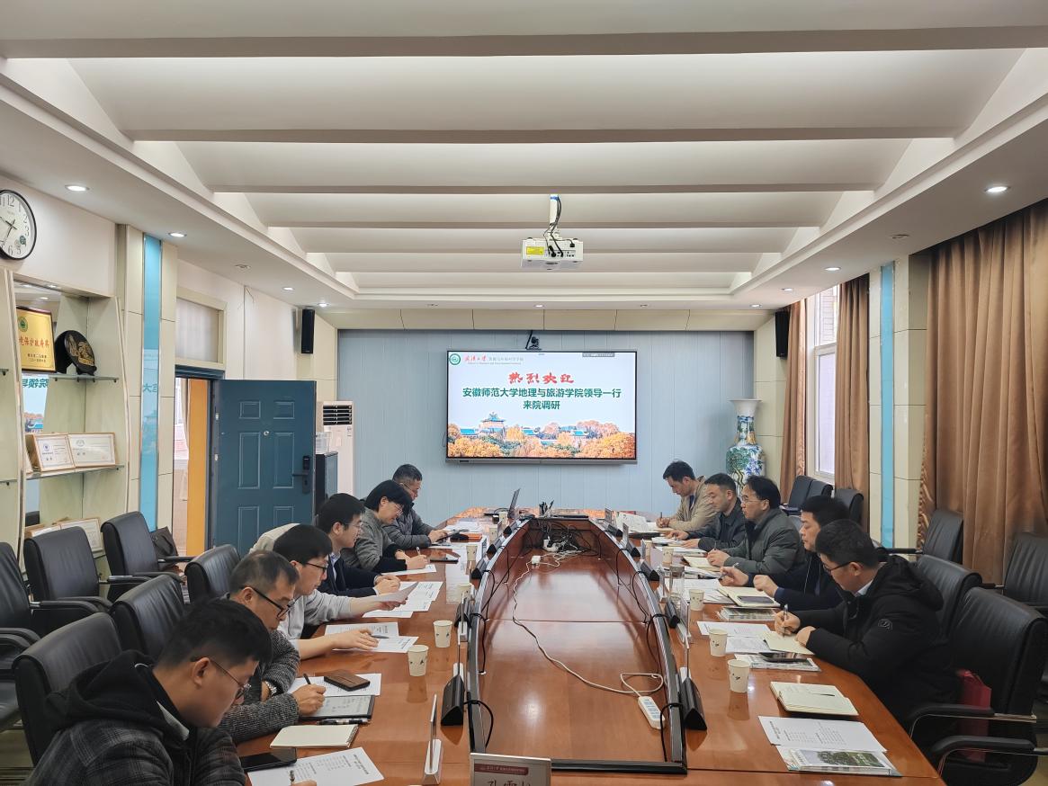 1月14日,地理与旅游学院杨兴柱副院长及各专业负责人一行赴武汉大学开展调研交流,武汉大学资源与环境科学学院魏秀琴副院长,地理科学与国土资源系主任焦利民教授、党支部书记刘殿锋教授、系副主任赵林教授、孔雪松教授、唐旭副教授,地理信息与地图科学系副主任亢孟军教授、管小彬副教授等参加了交流。