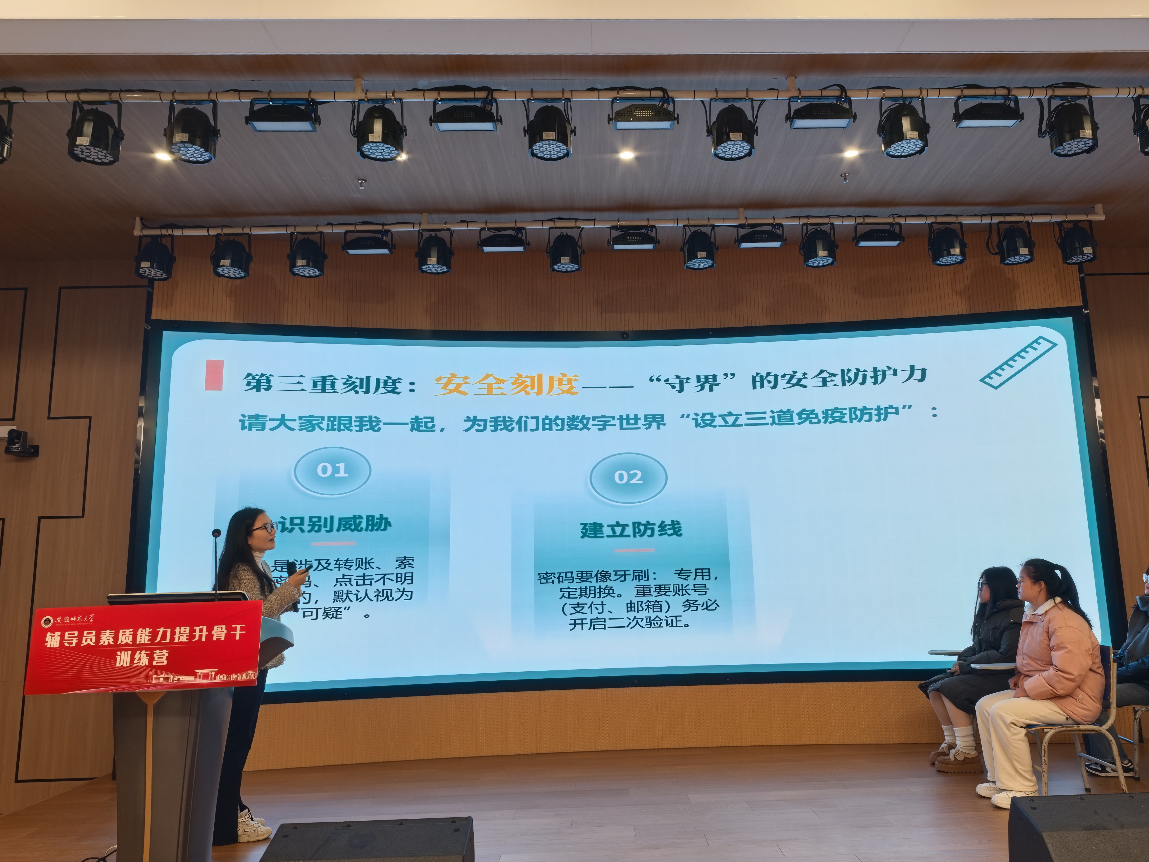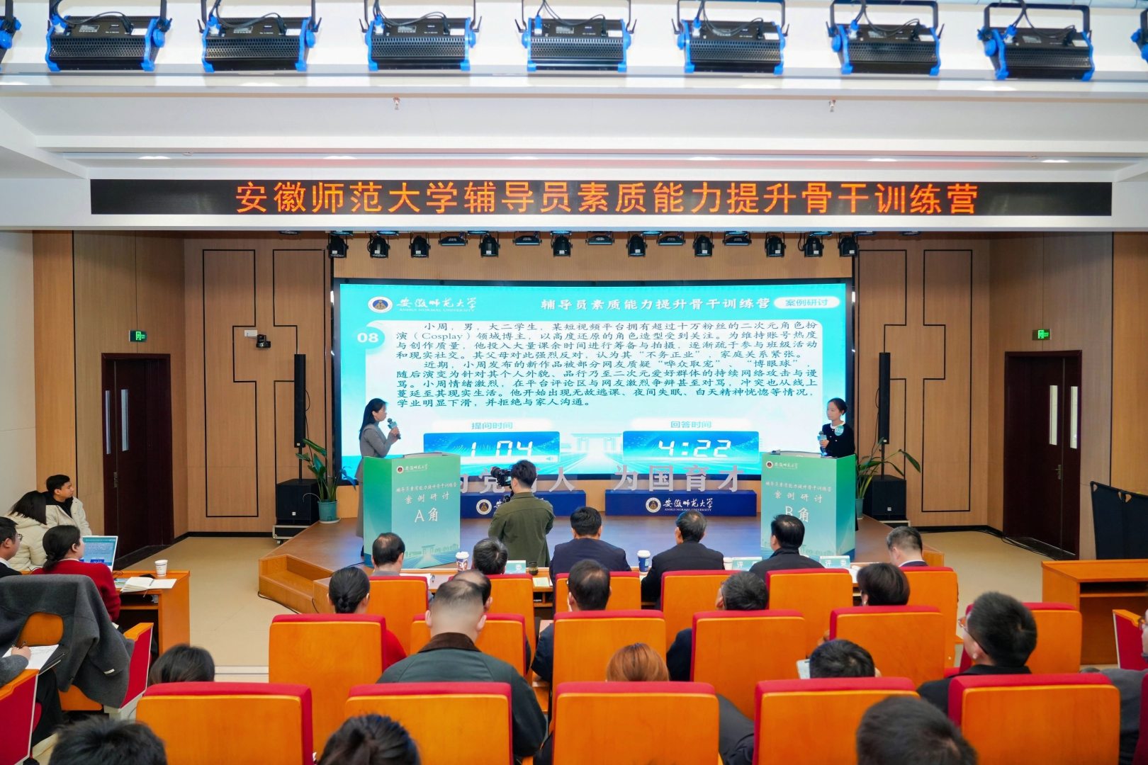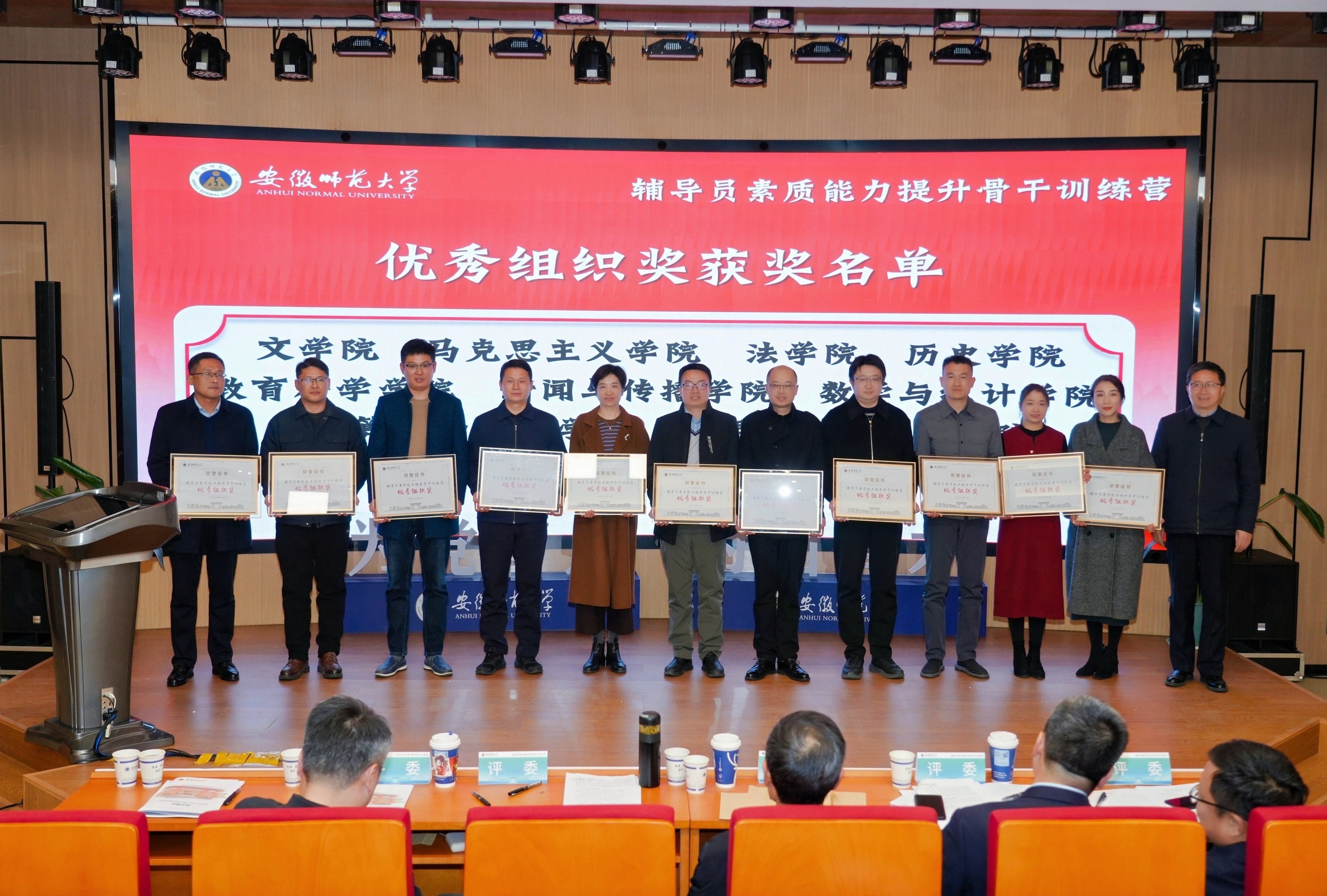 在基础知识、学情分析、案例研讨和谈心谈话环节中,我院韦银艳、操晶晶两位老师凭借在整个赛程中稳定的发挥、专业的分析和出色的应变能力,双双荣获“特别表现奖”,彰显了我院辅导员优秀的个人综合素质。此外,韦银艳凭借其精心设计与扎实实施的育人实践,荣获“优秀赋能主题班会”一等奖第一名,并在训练营的“赋能成长”环节中面向全校辅导员进行了公开展示。凭借在活动组织、人员参与及整体成绩上的优异表现,地理与旅游学院荣获大赛“优秀组织奖”。