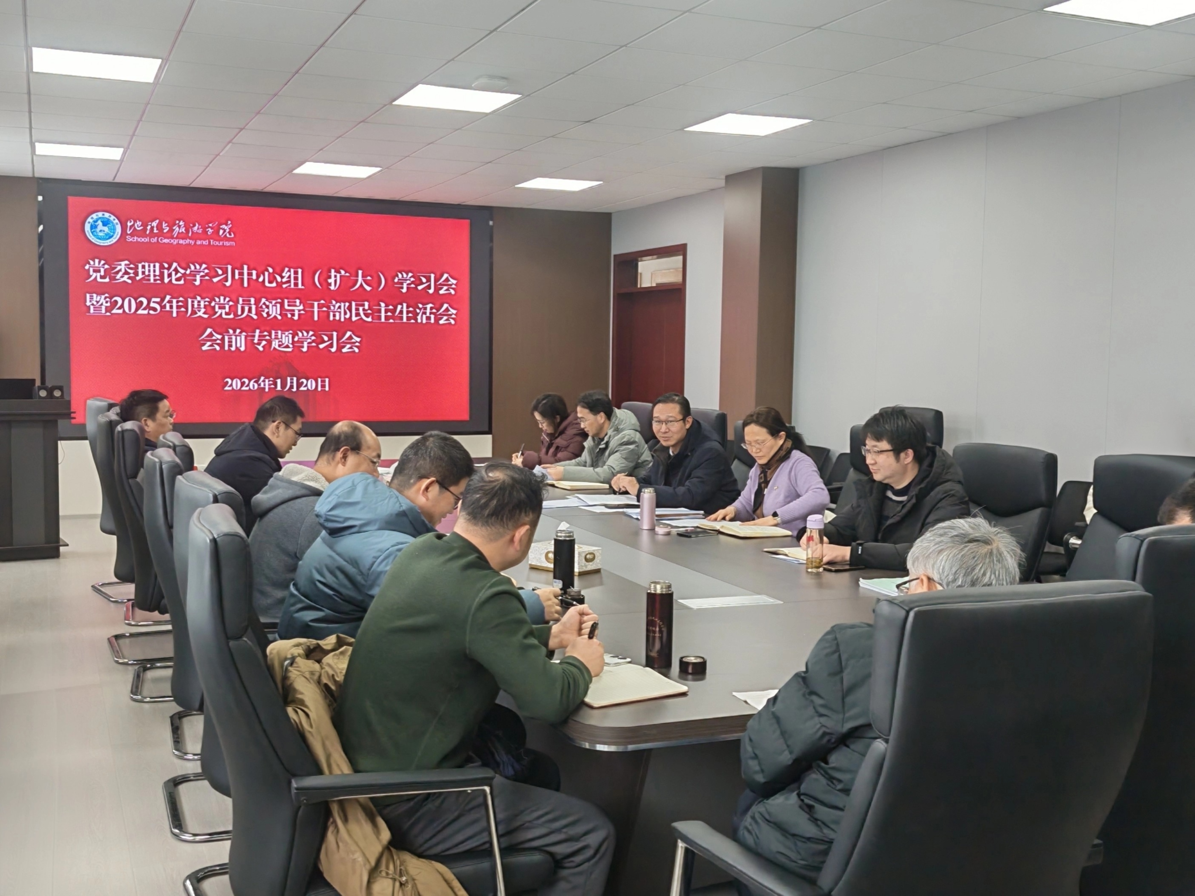 1月20日上午,地理与旅游学院在学院行政楼三楼会议室召开党委理论学习中心组(扩大)学习会暨2025年度党员领导干部民主生活会会前专题学习会,地理与旅游学院领导班子成员、党委委员参加会议。各党支部书记、专业负责人、学位点点长列席会议。会议由地理与旅游学院党委书记张顺主持。