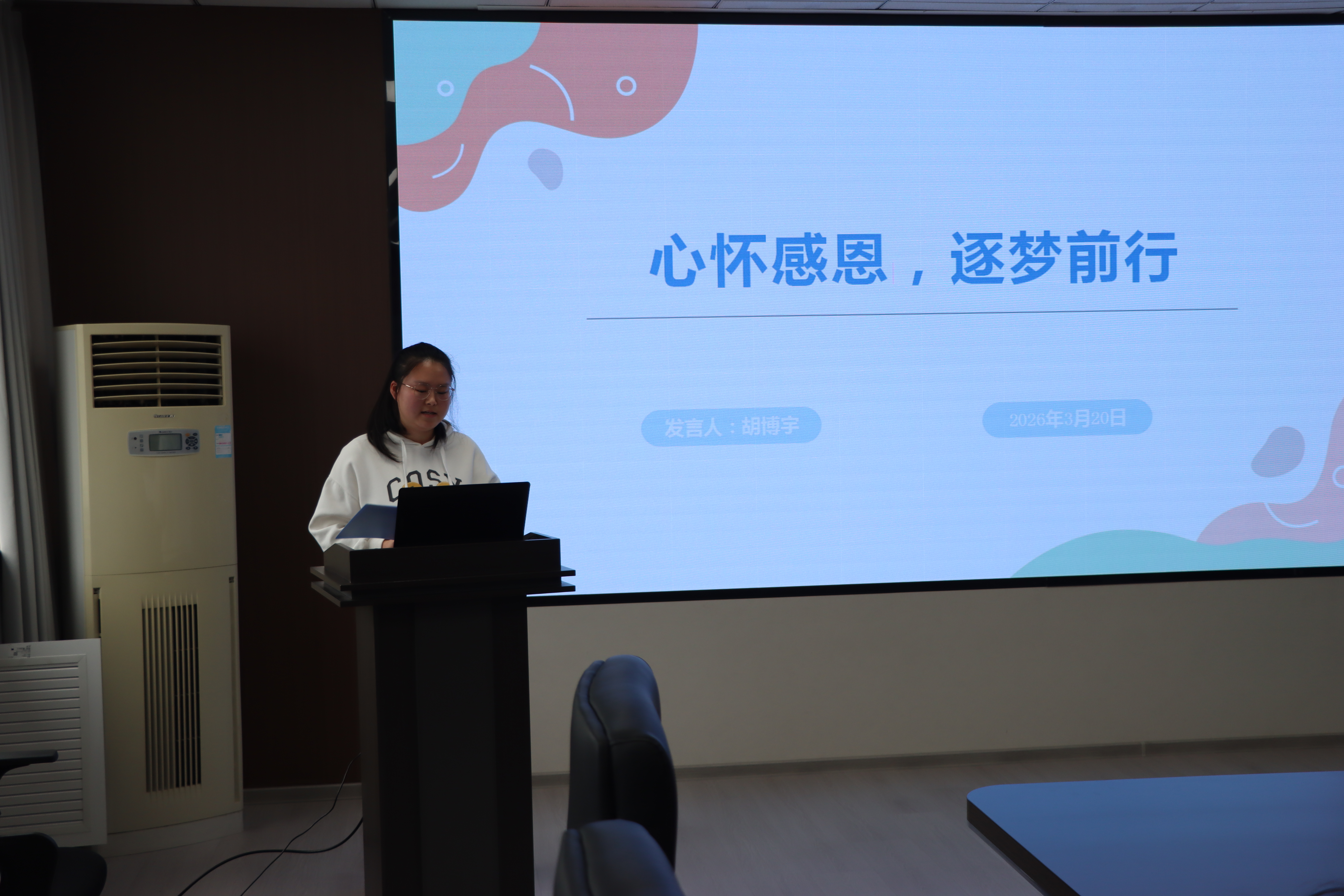 交流环节,“芜湖北大校友会”奖学金获奖代表,2022级地理科学(师范)专业赵硕以“我在师大地旅的故事”为题,从“学思践悟,做有深度的师大人”、“勤学笃行,做有厚度的地旅人”、“勇于担当,做有韧度的地理人”、“向阳花开,做有才干的地师人”四个专题,回顾了自己大学以来坚定初心、孜孜不倦、乐于奉献、勤于学习,在踏实进取中不断成长的蜕变之路。最后,以饱满热情表达了对北京大学芜湖校友会的感谢,以及对学校、学院的感激之情。“芜湖北大校友会”助学金获奖代表,2024级旅游管理专业胡博宇表示“我们接受资助,不仅是为了改善生活,更是为了积蓄力量,厚积薄发”,她提到滴水之恩,当涌泉相报,会把这份温暖化作动力来服务家乡、奉献社会、回报母校。