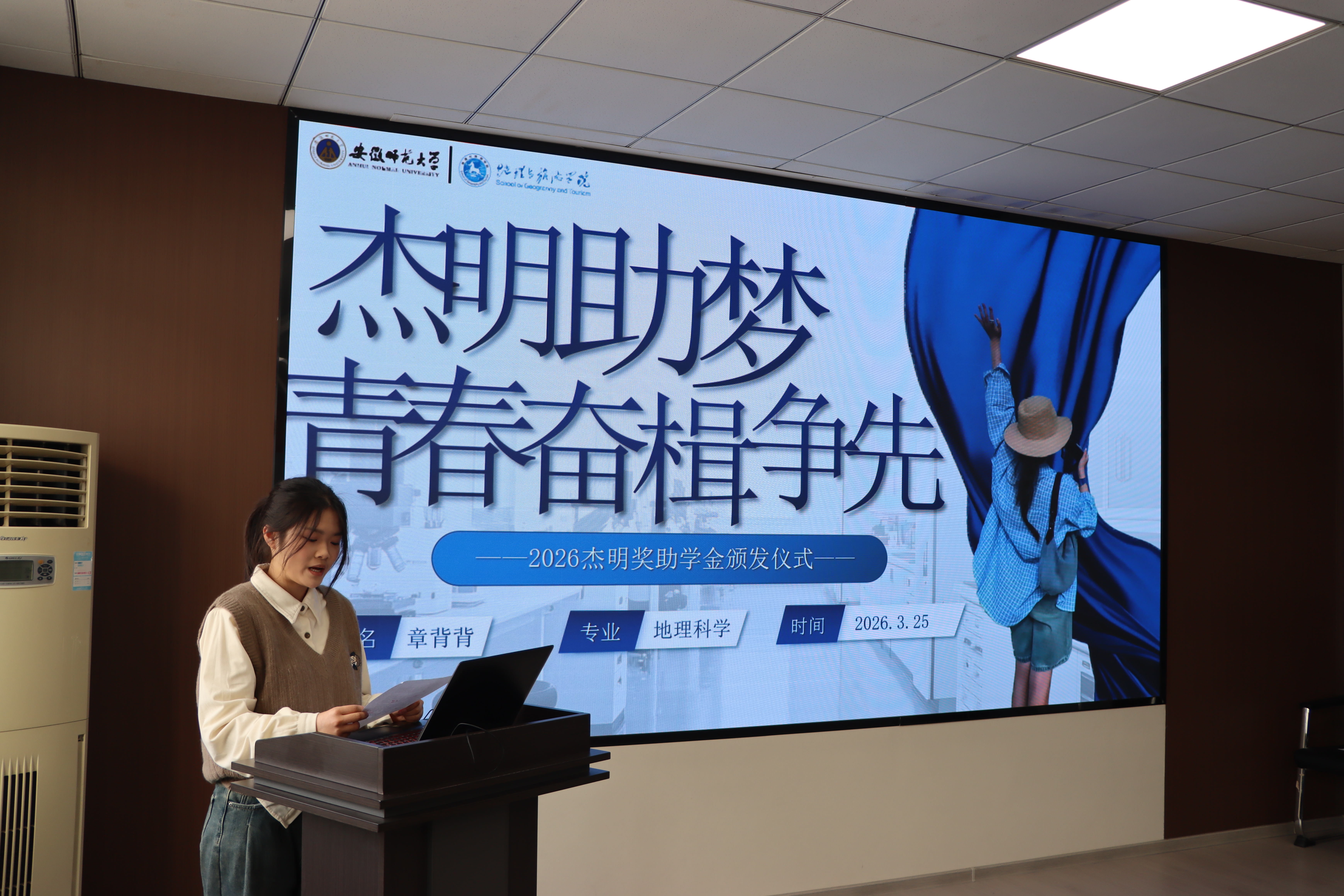 仪式上,钱程对资助方代表的到来表示诚挚欢迎,介绍了松茂奖助学金、杰明奖学金概况以及评选过程。朱立松讲述了自己在师大求学的美好时光,表达了自己对母校培养的感恩之情,并希望受到资助的同学在未来有能力时积极投身公益事业、回馈社会。王结明以“坚持”“品德”为主题,向同学们分享了自己创业历程,勉励同学们要脚踏实地、积极进取、感恩时代、回报社会。项家春宣读了颁发决定,通报了2025年度松茂奖助学金、杰明奖学金获奖受助学生名单。随后,捐赠方代表和学院领导为获奖受助学生颁发证书。
