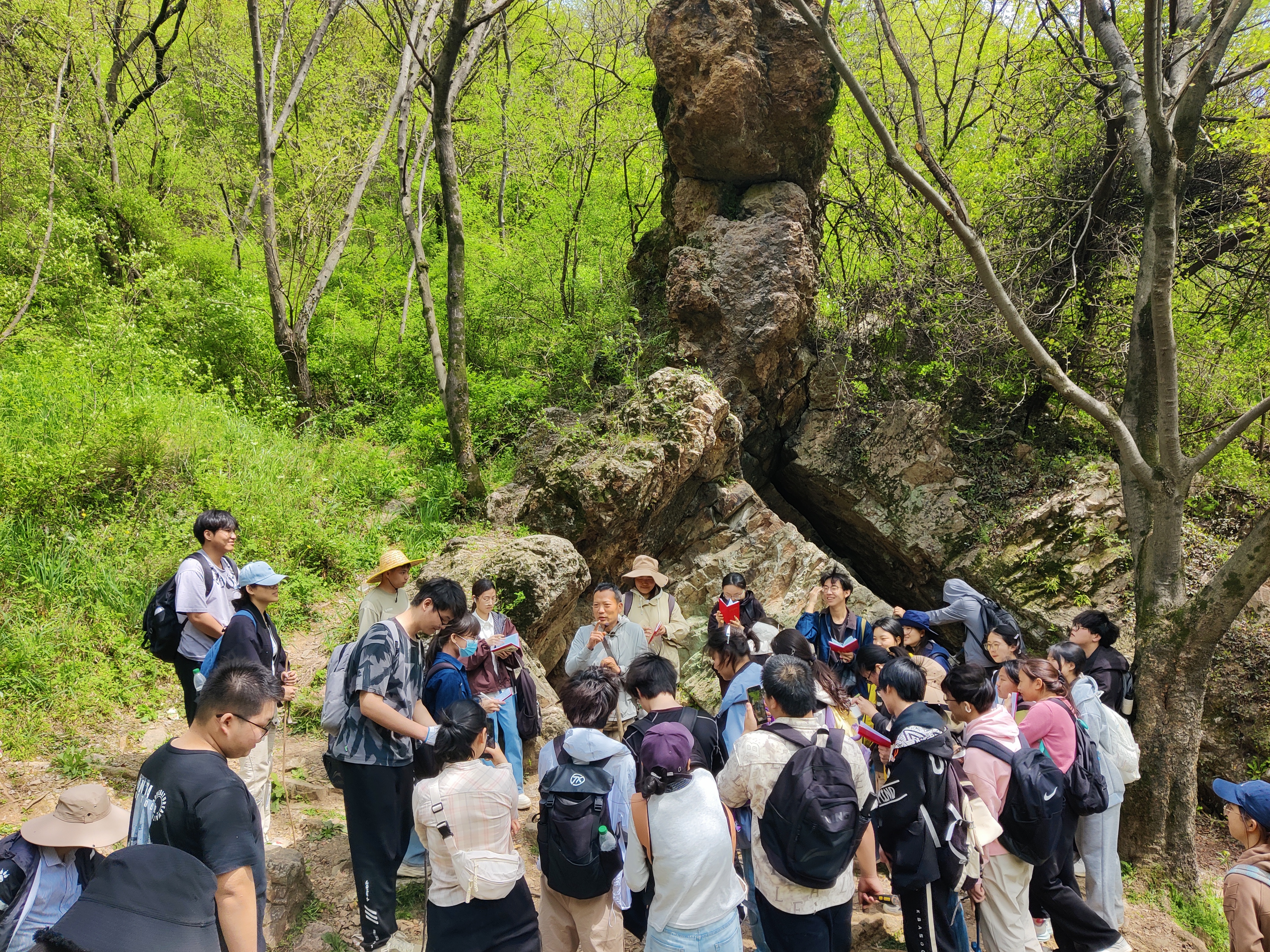 在7410工厂教学点(中国人民解放军第7410工厂),开展沉浸式国防思政教育。指导教师向同学讲述工厂扎根巢湖、服务国防的创业故事,感悟几代军工人“国家利益至上、质量就是生命”的坚守与奉献。从大地构造到国防装备,从地质报国到军工强国,同学们在实景感悟中深刻理解:守护大好河山,既要读懂地球密码,更要筑牢国家安全屏障,家国情怀在军工精神与地质使命的交融中愈发坚定。在鹅头岩教学点,师生们沿着崎岖山径攀登,直面亿万年地壳运动造就的逆冲断层奇观。实习指导教师现场讲解断层构造与区域地质安全、防灾减灾、工程建设的密切关联,引导学生从岩石纹理读懂大地密码,从地质变迁感悟山河壮丽。大家围坐岩下,对照擦痕走向判断断层性质,绘制构造素描,在实景教学中把专业知识与国土安全、生态保护紧密相连,爱国情怀在地质探索中自然升华。