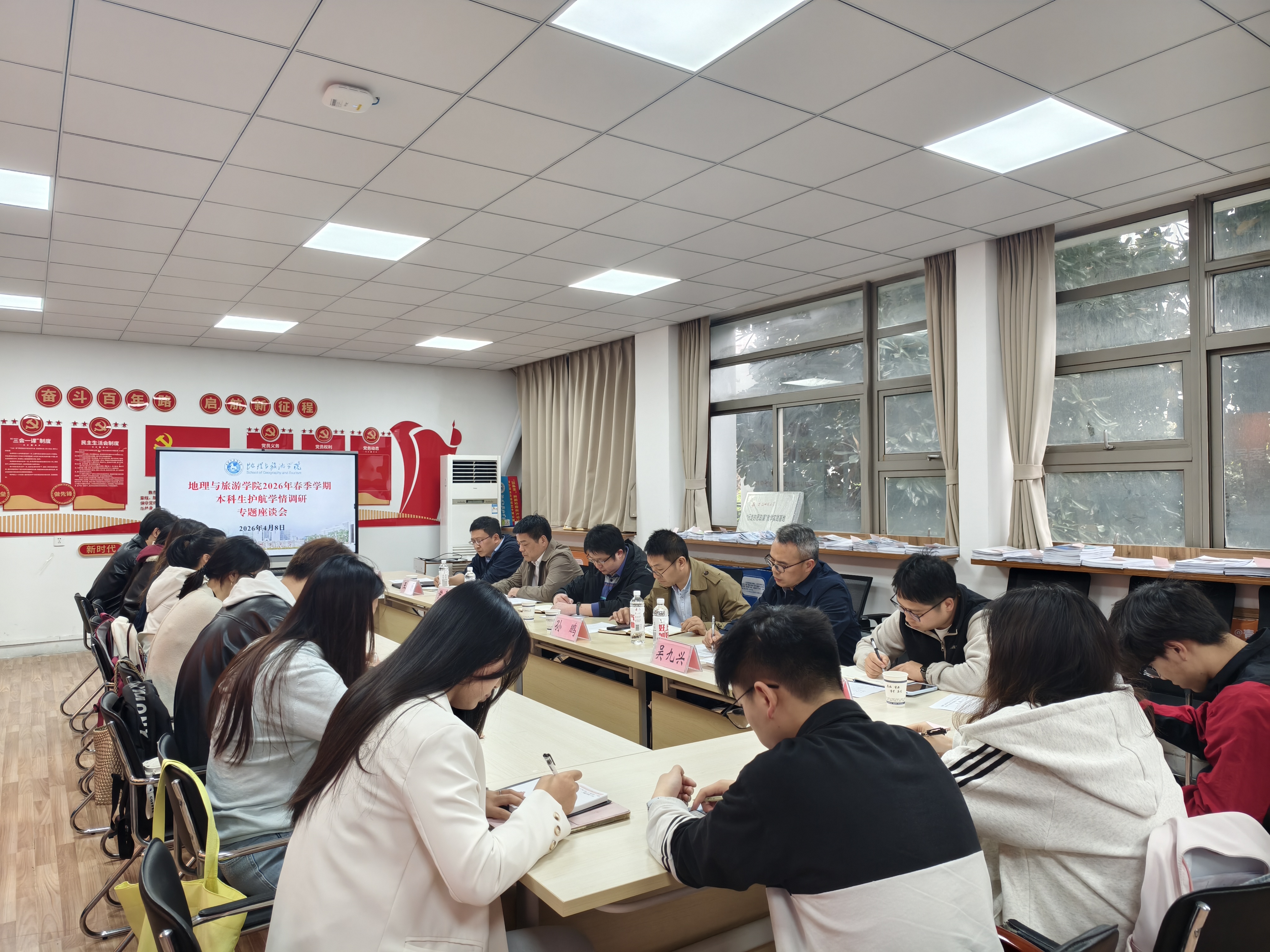 为全面贯彻学校大学生护航行动计划,精准落实“健康第一”教育理念,4月8日下午,地理与旅游学院组织召开2026年春季学期本科生、研究生护航学情调研专题座谈会。会议结合专业特点,分设本科地理地拔地信、旅游土地城规和研究生三个分会场同步进行。学院领导班子成员、各专业负责人、点长代表、全体辅导员及各班级学生代表共同参会。