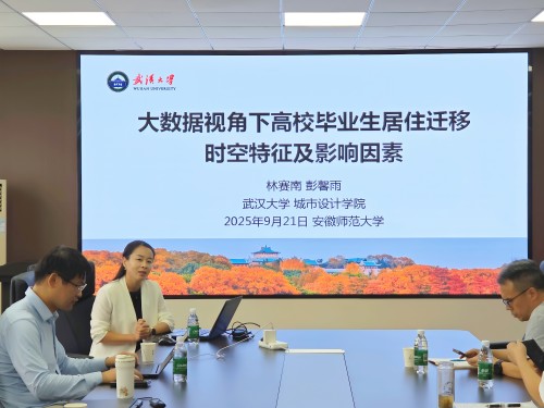 2025年9月21日下午,武汉大学城市设计学院博士生导师林赛南教授应邀到我院讲学,并做了题为“大数据视角下高校毕业生居住迁移的时空特征及影响因素”的学术讲座。报告在学院行政楼三楼会议室举行,学院相关专业的教师和研究生聆听了讲座。