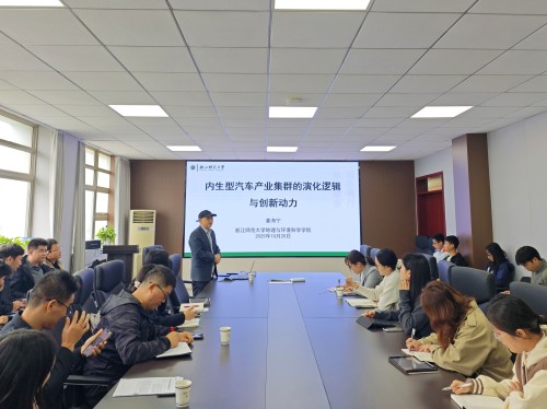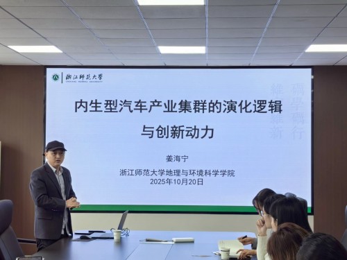 2025年10月20日上午,浙江师范大学地理与环境科学学院博士生导师姜海宁教授应邀到我院讲学,并做了题为《内生型汽车产业集群的演化逻辑与创新动力》的学术报告。报告在学院行政楼三楼会议室举行,学院相关专业的教师和研究生参加了报告会。