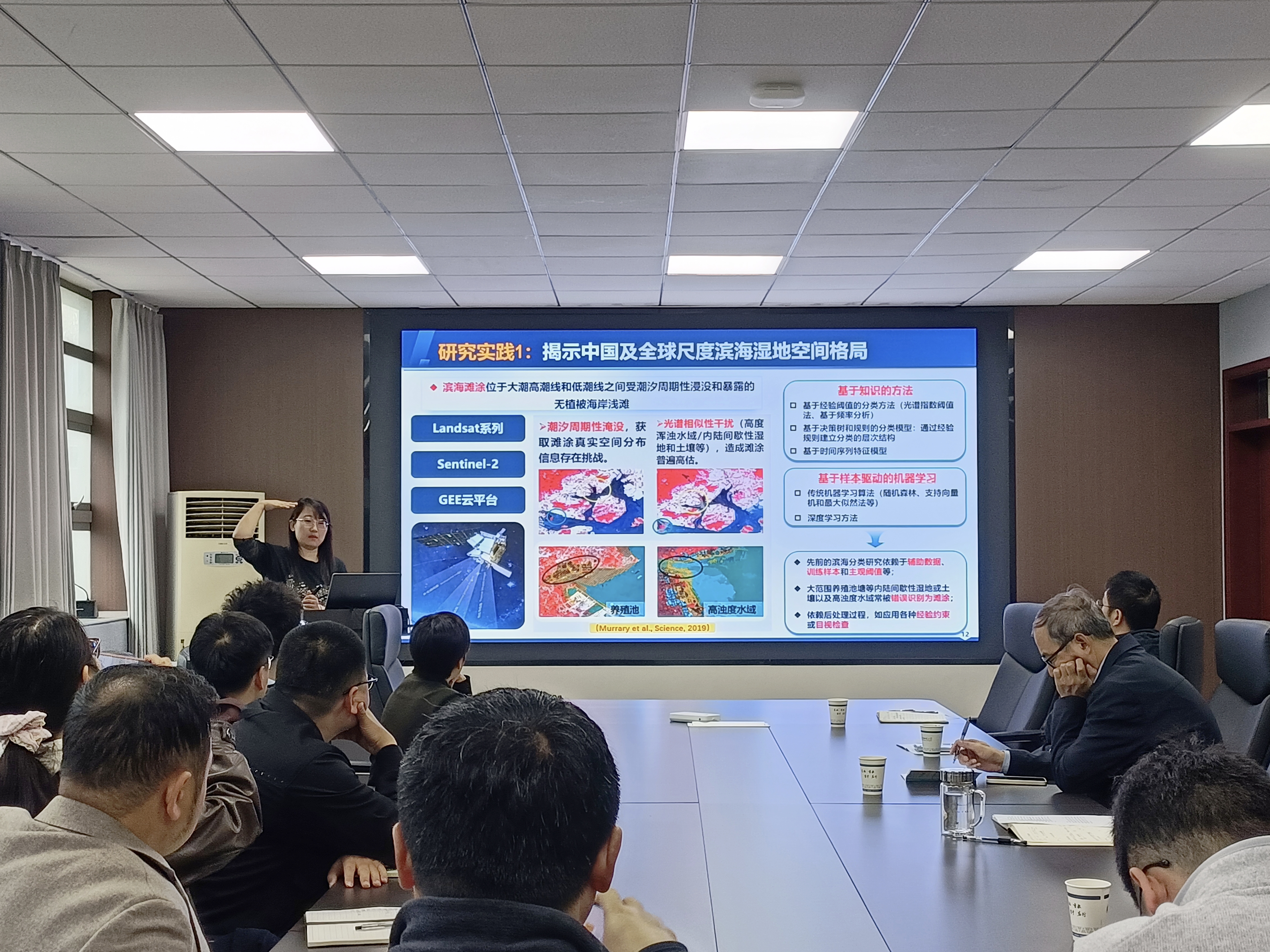 报告中,贾明明研究员系统梳理了我国在滨海湿地遥感领域的最新研究实践与未来展望,为全球气候变化背景下滨海湿地的精准监测与生态保护提供了重要科技支撑。从中国及全球尺度滨海湿地空间格局的揭示到滨海湿地相关SDGs的定量监测与评估方法体系的研发,层层深入,展示了遥感技术在湿地资源调查、生态评估及人类活动影响分析中的前沿实践。同时她结合自身承担的科研项目,分享了红树林等方面的典型案例,并对未来滨海湿地遥感在气候变化等方面的研究进行了展望。