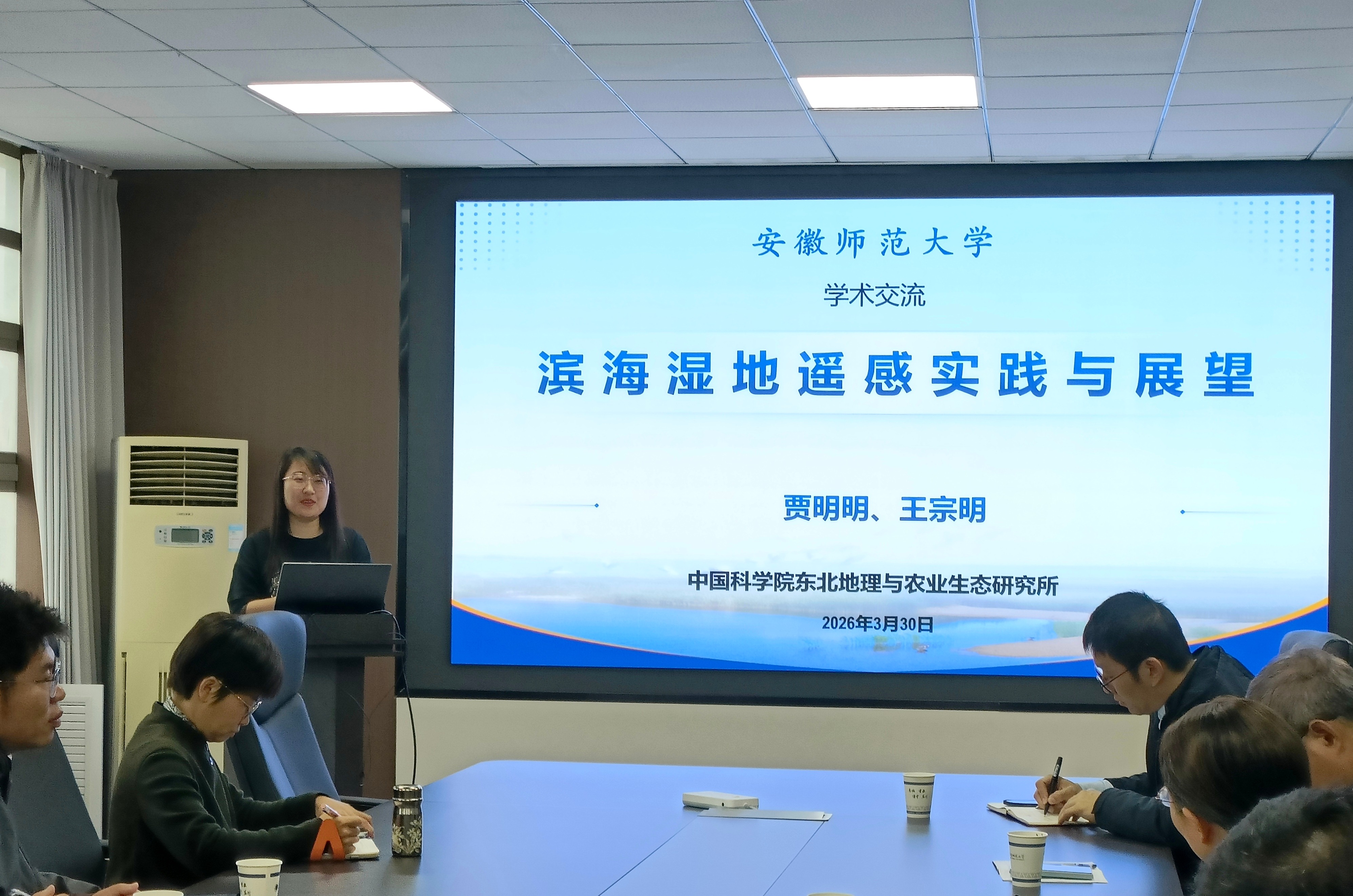 2026年3月30日上午,中国科学院东北地理与农业生态研究所贾明明研究员应邀到我院讲学,并做了题为《滨海湿地遥感实践与展望》的主题报告。报告会在学院行政楼三楼会议室举行,学院相关专业的教师和研究生聆听了此次报告。