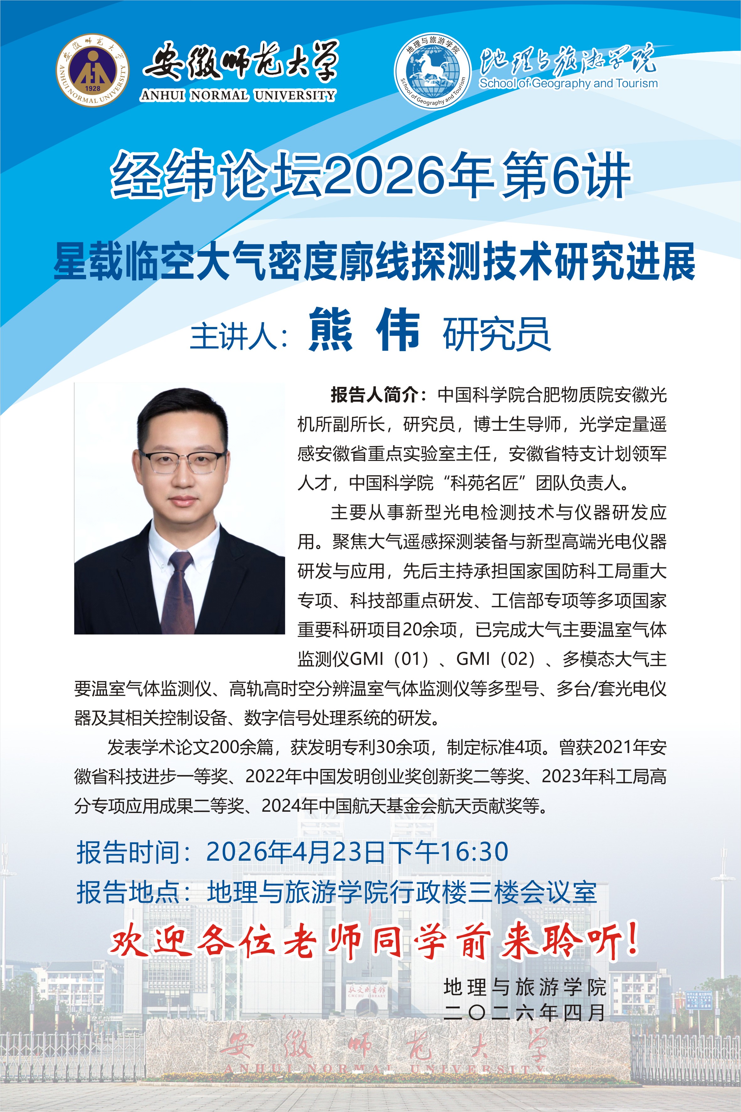中国科学院合肥物质科学研究院熊伟研究员应邀到我院讲学