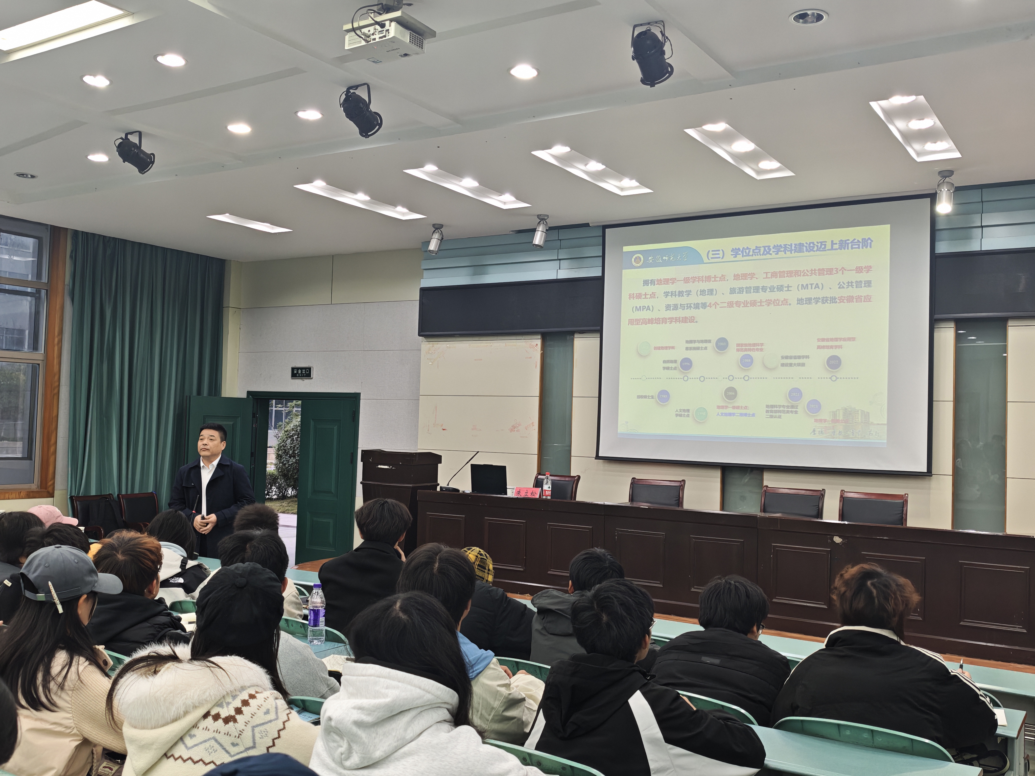尹寿兵围绕专业认知、学院发展与学业规划三个方面进行讲解。首先,他从宏观层面阐述了地旅学院办学历史与发展沿革,重点强调了学院在学科建设与学位点布局方面取得的成就。他详细讲解了旅游管理专业的特色与优势,包括专业定位、课程体系及人才培养模式,帮助新生建立对专业的整体认知。在微观层面,他结合课程设置、学分学时安排及四年学业发展路径,具体说明了学生的学习任务与成长方向,引导大家从大一开始树立规划意识。