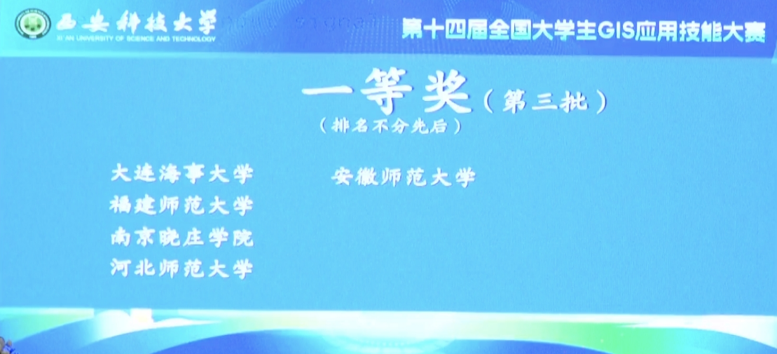2025年11月16日,从第十四届全国大学生GIS应用技能大赛现场传来喜讯,由我校地理与旅游学院汪左、宋立生老师指导,地理信息科学专业2023级本科生孙慧文、陈子璇、朱睿文、宋明谕四位同学组成的参赛团队,凭借扎实的专业基础、出色的技术应用能力和稳定的赛场发挥,一举夺得大赛一等奖,充分展现了我校学子在GIS领域的卓越专业素养与创新实践能力。