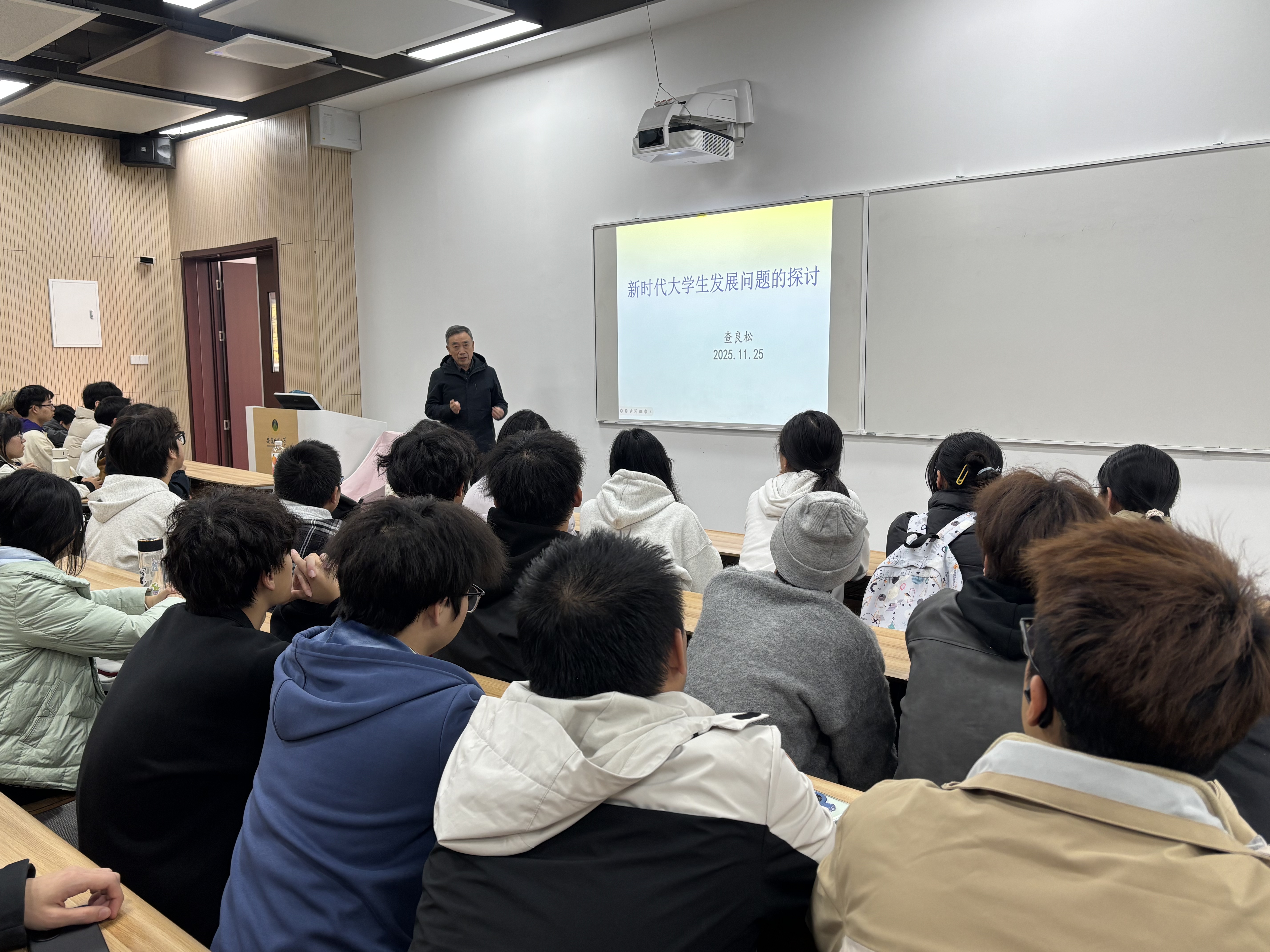 11月25日,地理与旅游学院2025级地理信息科学专业新生思想教育报告会在望道楼A101教室举行。报告会特邀学院关工委查良松教授担任主讲,以“新时代大学生发展”为主题,为新生答疑解惑,旨在帮助新生尽快适应大学生活,明晰专业发展方向。