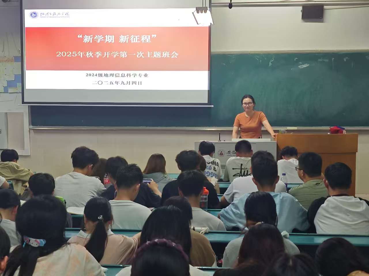 新学期伊始,为引导学生尽快调整状态,明确纪律要求与学习目标,我院2024级地理信息科学专业于近期召开了“新学期 新征程”秋季开学第一次主题班会。班会由辅导员韦银艳主持,围绕纪律规范、安全教育和学风建设等核心内容展开。