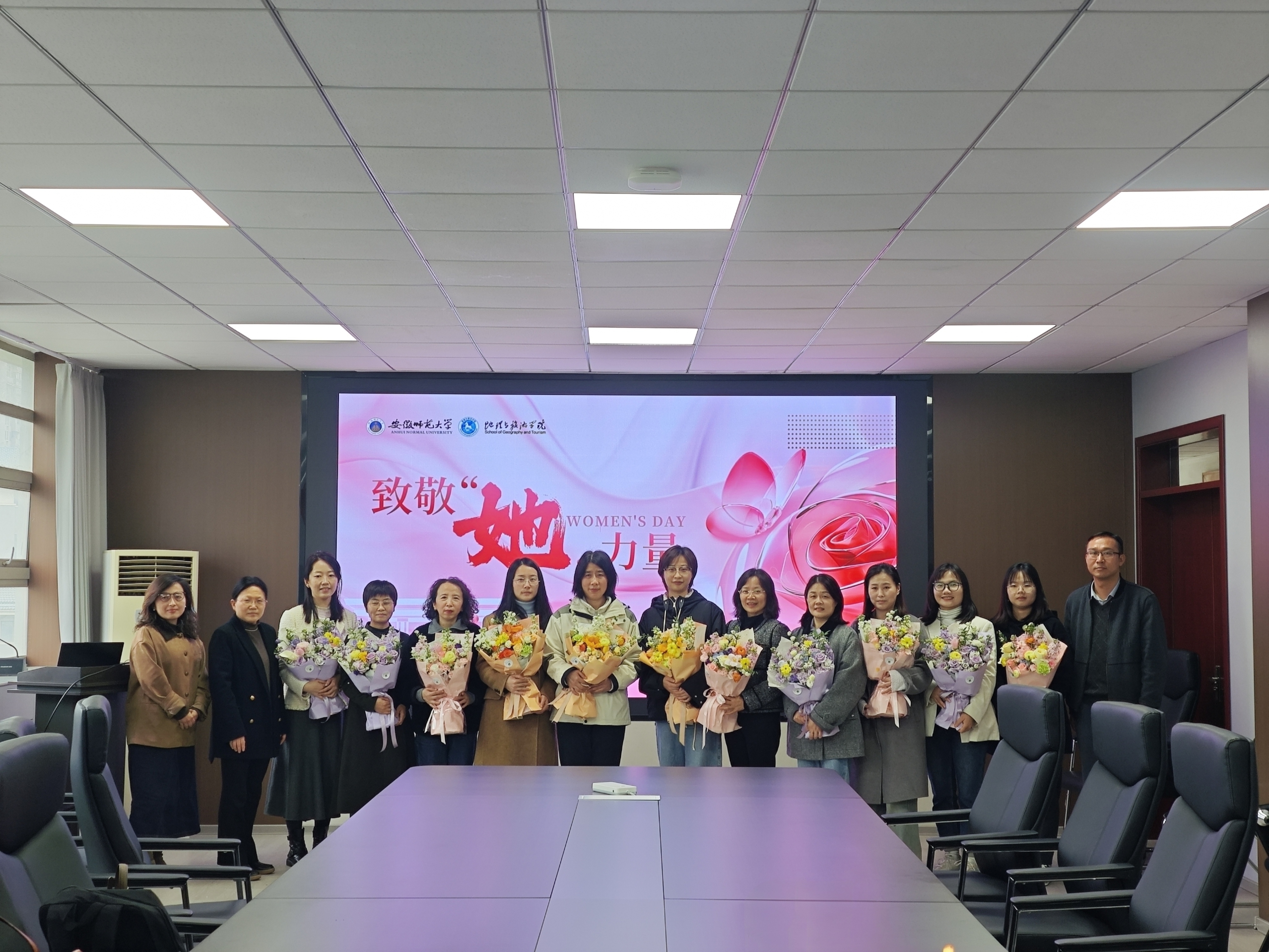 在纪念“三八”国际妇女节116周年之际,为进一步丰富广大女教职工精神文化生活,展现巾帼风采,凝聚巾帼力量,3月26日下午,地理与旅游学院在学院行政楼三楼会议室举行“致敬‘她’力量”先进女教职工座谈会,地理与旅游学院党委书记张顺、院长方凤满以及2025年度师德考核优秀女教职工参加活动。座谈会由地理与旅游学院副院长汪文文主持。